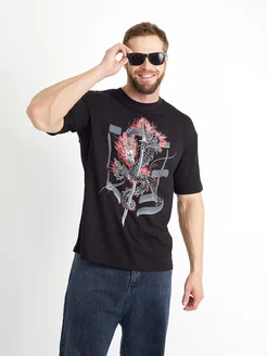 Футболка черная оверсайз с драконом