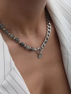 Колье из натуральных камней с шипом