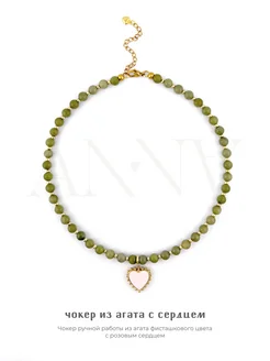 Чокер из зеленого агата с сердечком