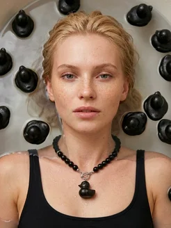 Колье из черного агата с уточкой