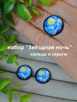 Комплект кольцо и серьги. Ван Гог Звёздная ночь
