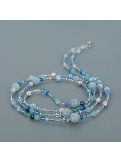 Бусы длинные Гжель c перламутром, кварцем и кошачим глазом