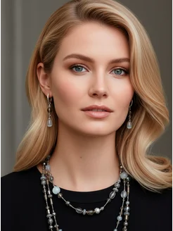 Длинные бусы с раухтопазом и кошачьим глазом Луна