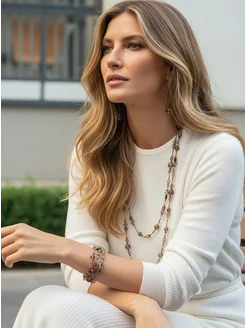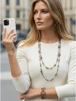 Бусы длинные Рождество, гелиотис перламутр агат 139 см