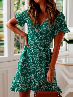 Платье женское летнее в цветочек с коротким рукавом