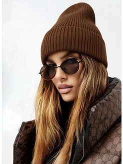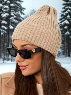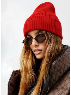 Шапка женская осенняя-весенняя тыковка с отворотом
