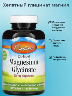 Хелатный глицинат магния, 200 мг, 180 таблеток