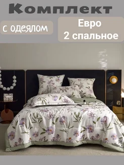 Постельное белье Евро с готовым одеялом комплект хлопок