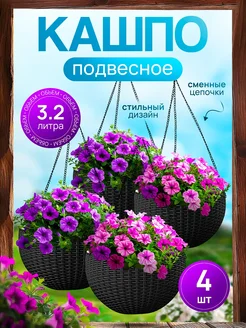 Кашпо подвесное напольное уличное на цепочке 4 штуки 3,2 л