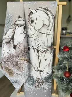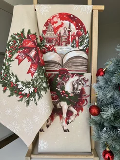 Скатерть тканевая дорожка на стол 50x145 Новогодний декор