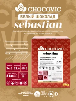 Шоколад кондитерский белый Sebastian 34,6% какао 1,5кг