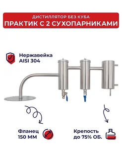 Дистиллятор с 2 сухопарниками на фланце 5 отверстий без куба