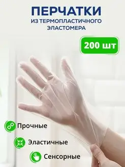 Перчатки одноразовые TPE ТПЭ 200 шт 100 пар хозяйственные