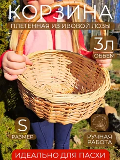 корзина плетеная из лозы ручной работы с ручкой для хранения