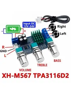 Цифровой усилитель (2 канала) XH-M567 TPA3116D2 2*80W 12-24V