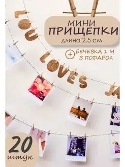 Декоративные прищепки для фото и рукоделия деревянные мини