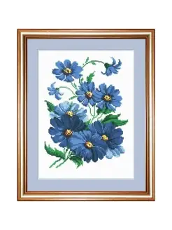 Набор для вышивания крестом Синие цветочки 29x20 см