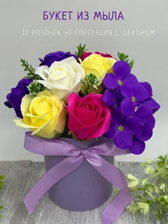 Букет из мыла 11 розочек + гортензия
