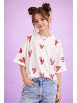 Новогодняя футболка с сердечками, подростковая оверсайз
