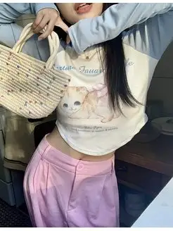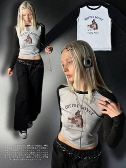 Лонгслив облегающий укороченный кроп топ с принтом y2k