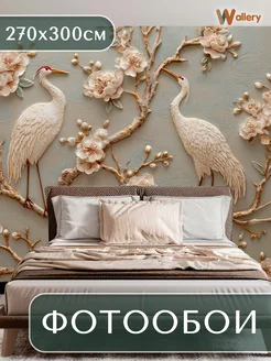 Фотообои 3D Журавли шинуазри барельеф в спальню 270х300 см