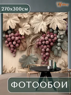 Фотообои 3D Кисть винограда с текстурой дерева 270х300 см