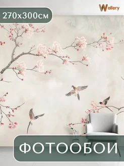 Фотообои Сакура и птицы в спальню в зал 270х300 см