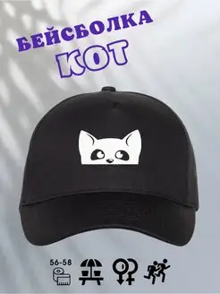 Бейсболка базовая с принтом Кот черная унисекс Кепка