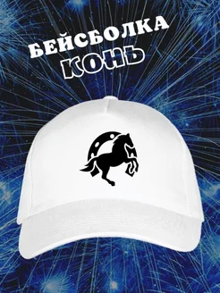 Бейсболка белая базовая принт Конь лошадь унисекс