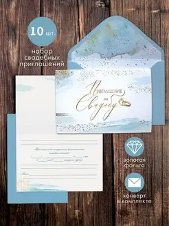 Приглашения на свадьбу с конвертом, набор 10 шт