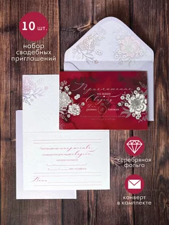 Пригласительные на свадьбу, свадебные приглашения 10 шт