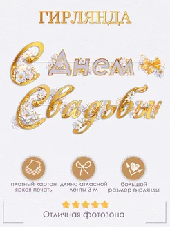 Гирлянда растяжка С днем свадьбы, свадебное украшение