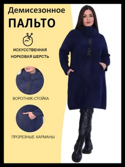 Пальто демисезонное теплое длинное с капюшоном