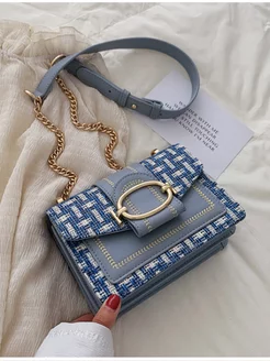 Твидовая сумка в корейском стиле голубая
