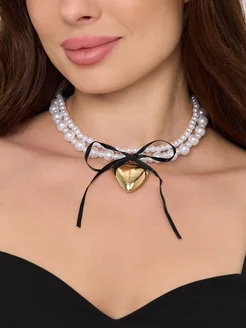 Колье чокер на шею из жемчуга с сердцем