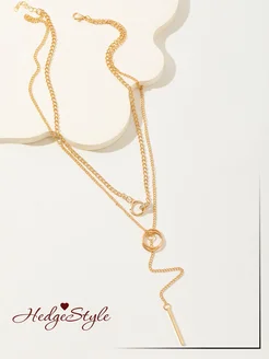 Колье чокер на шею двойная цепочка с подвеской