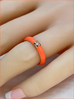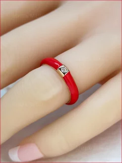 Кольцо с эмалью и фианитом регулируемое