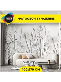 Фотообои бумажные Барельеф 3D. Цветы серые 400х270 см