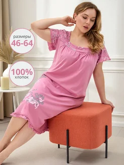 Ночная сорочка с кружевом и разрезом на бретельках длинная