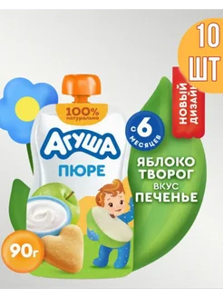 Пюре Агуша яблоко-творог-печенье с 6мес 10х90гр