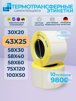 Этикетки самоклеящиеся термотрансферные 43x25 мм, 10 рулонов