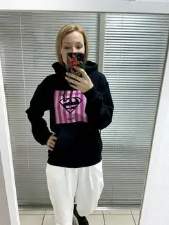 Толстовка женская с капюшоном с принтом теплая удлиненная