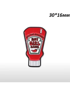 Значок металлический с эмалью Соус Hot Girl Sauce