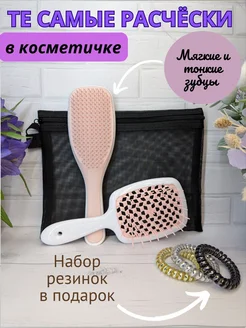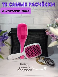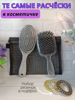 Расческа для волос массажная 2 штуки и косметичка в наборе