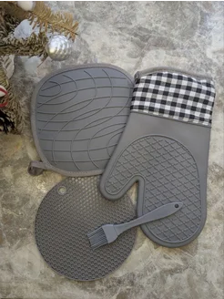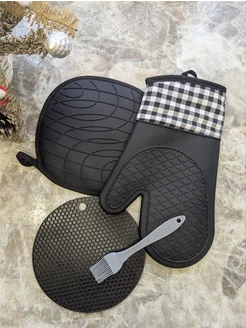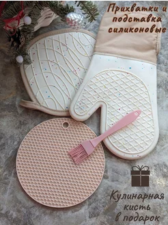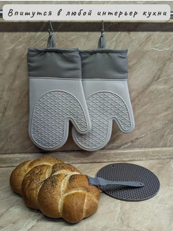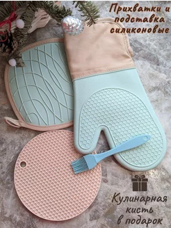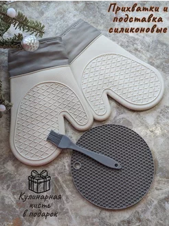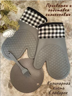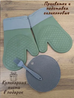 Прихватки варежки кухонные силиконовые 2шт и подставка набор