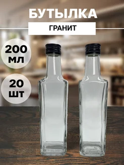 Стеклянные бутылки "Гранит" 200мл. Черные винтовые (20шт)