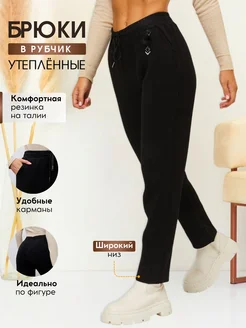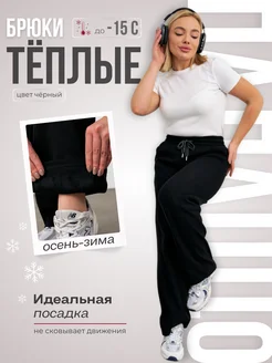 Брюки палаццо утепленные на резинке с высокой посадкой
