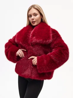 Бордовая Шуба искусственная укороченная с длинным ворсом