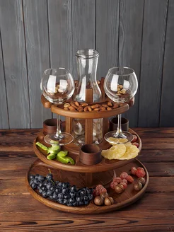 Ярусная менажница из темного дуба. Многоуровневая этажерка