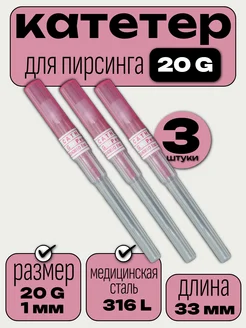 Игла для пирсинга 20 G 1,0 мм 3 шт